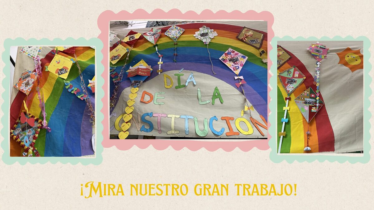 Después de semanas de manualidades creativas por grupos, guiados por la estela de Mary Poppins y sus cometas como símbolo de libertad, transformación y unión familiar. Hoy hemos recordado por megafonía algunos artículos de la Constitución española hora a hora.